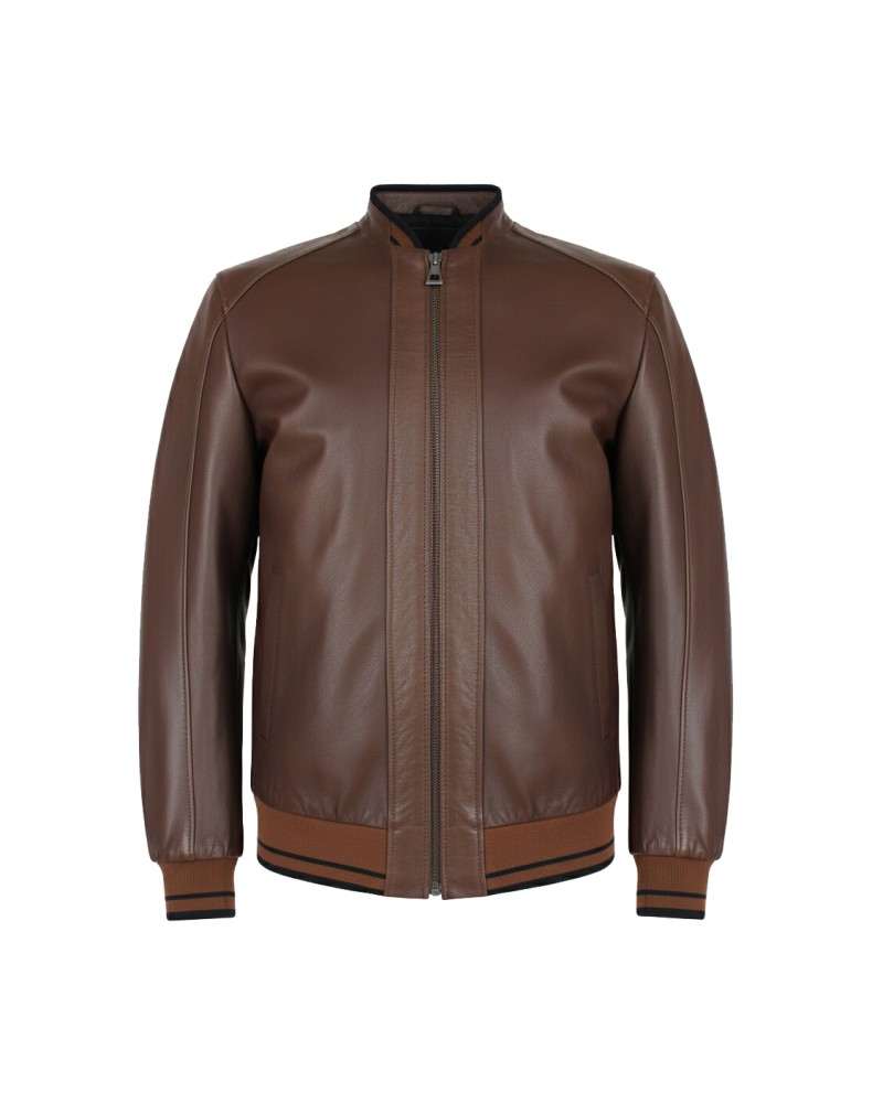 Chaqueta de piel con detalle textil líneas modelo COTA