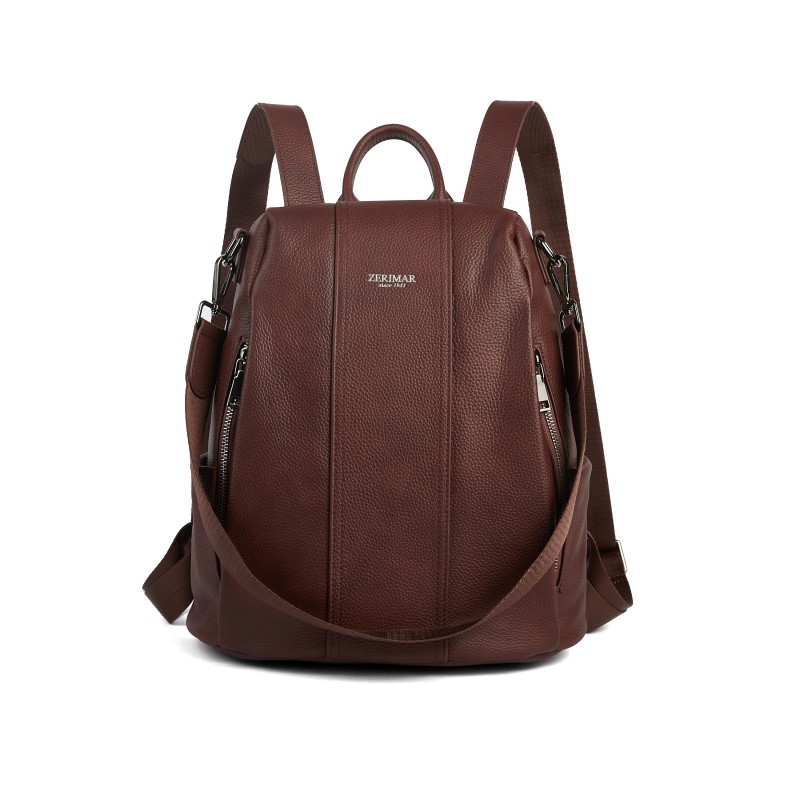 Mochila de piel con cremalleras 24x34x16 cm CACAO