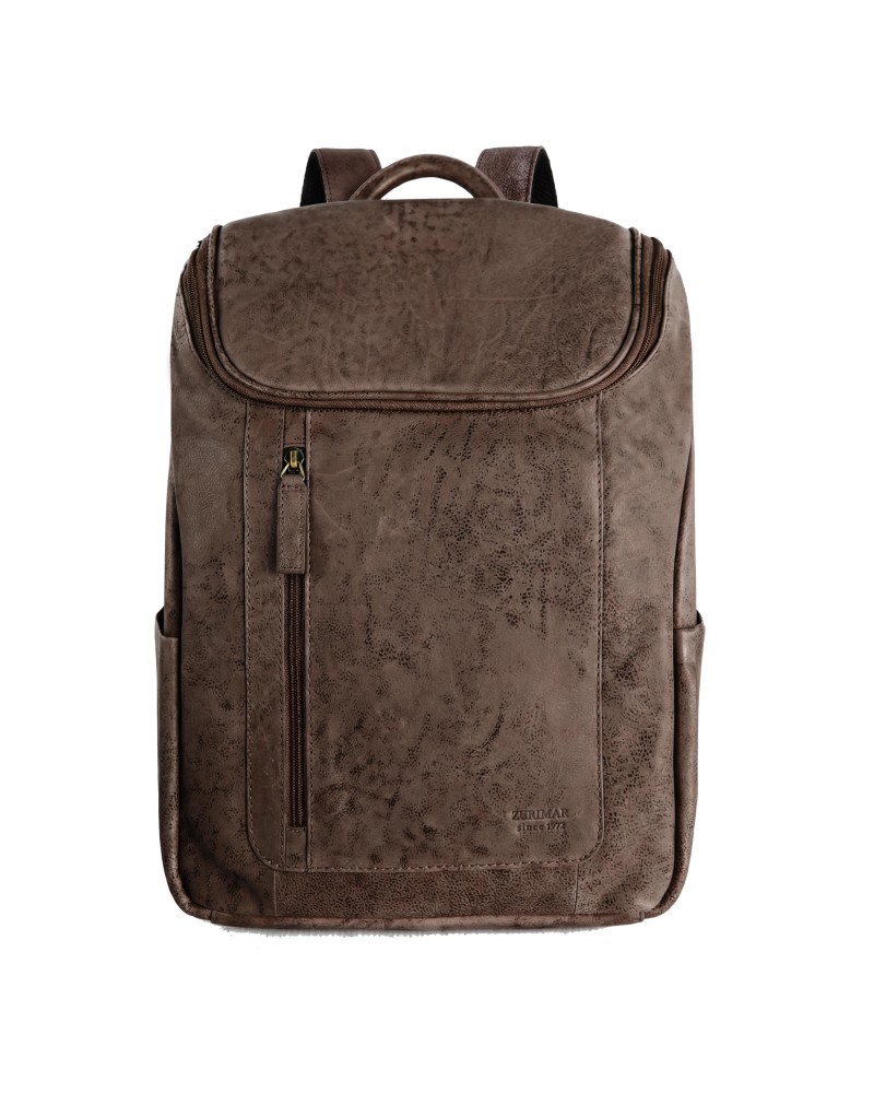 Mochila de piel grabada estilo vintage con cierre de cremallera